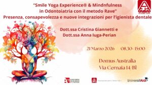 Sei in: Home / prova / AIDI LAZIO: “Smile Yoga Experience® & Mindnfulness in Odontoiatria con il metodo Rave” Presenza, consapevolezza e nuove integrazioni per l’igienista dentale” _ / 21 marzo 2026 (2)