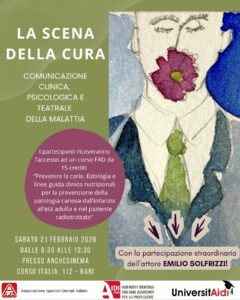 Sei in: Home / prova / AIDI PUGLIA: “LA SCENA DELLA CURA COMUNICAZIONE CLINICA, PSICOLOGICA E TEATRALE DELLA MALATTIA”_SABATO 21 FEBBRAIO _BARI_ / AIDI PUGLIA 21.02.26