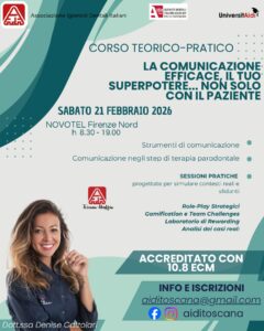 Sei in: Home / prova / AIDI TOSCANA-UMBRIA: “LA COMUNICAZIONE EFFICACE, IL TUO SUPERPOTERE… NON SOLO CON IL PAZIENTE”_ACCREDITATO 10.8 ECM_ 21 febbraio, FIRENZE_ / Corso AIDI Toscana Dott.ssa Calzolari