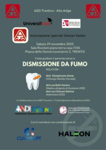 Sei in: Home / prova / AIDI Trentino Alto Adige: “Come guidare il paziente verso la DISMISSIONE DA FUMO”_Sabato 29 novembre 2025_TRENTO_ / Locandina corso 29 NOVEMBRE 2025 DEF1